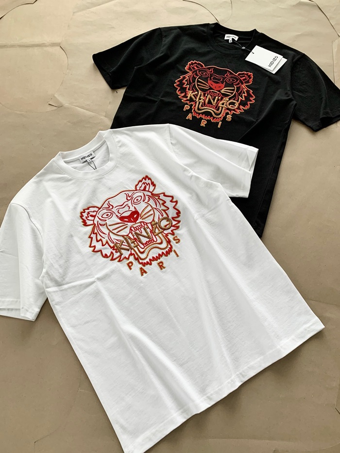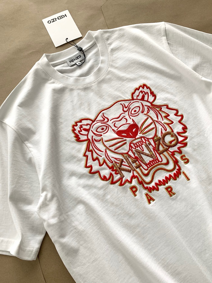 ケンゾーユニセックスホワイトクルーネック半袖Tシャツn0197