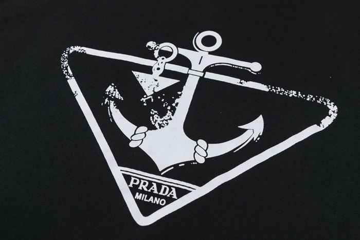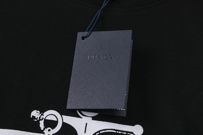 プラダメンズクルーネックブラック半袖Tシャツa02703