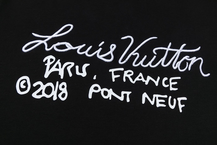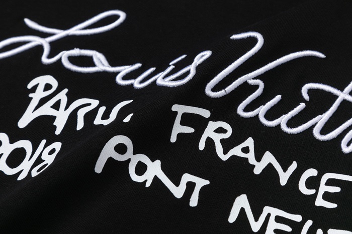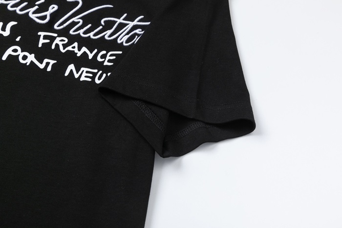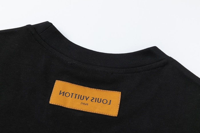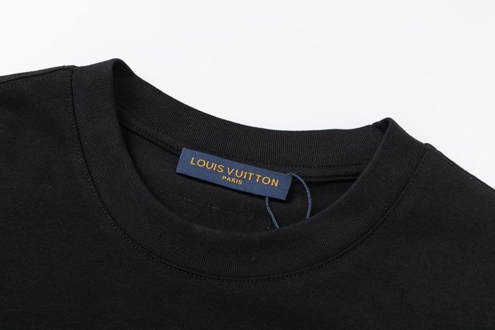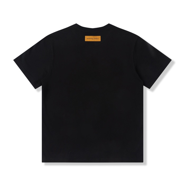 ルイヴィトンユニセックスブラッククルーネック半袖Tシャツu04872