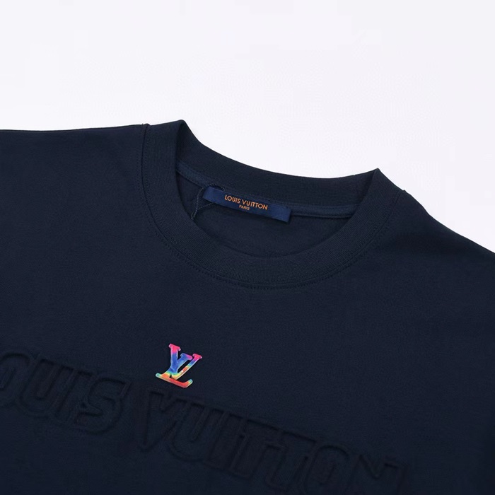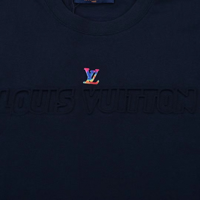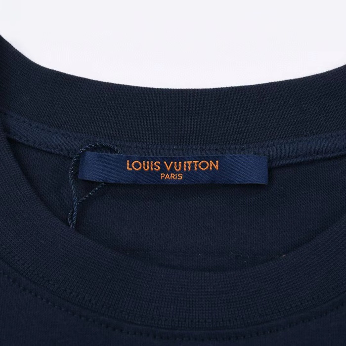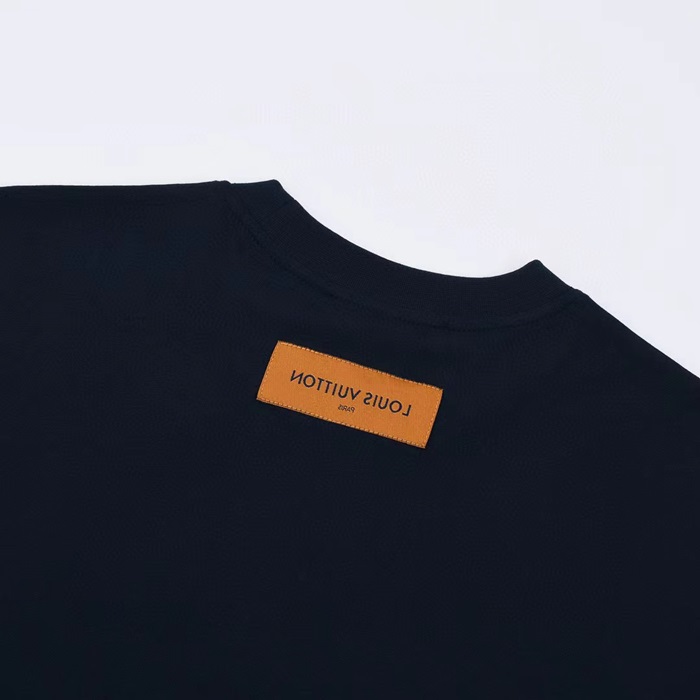 ルイヴィトンユニセックスネイビークルーネック半袖Tシャツu04880