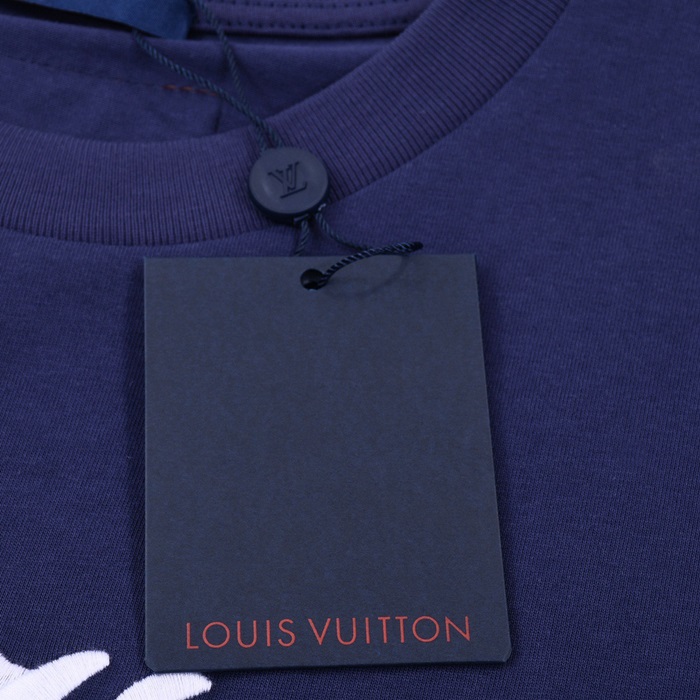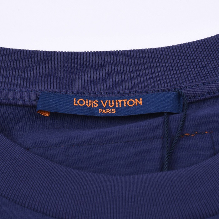 ルイヴィトンユニセックスネイビークルーネック半袖Tシャツu04882
