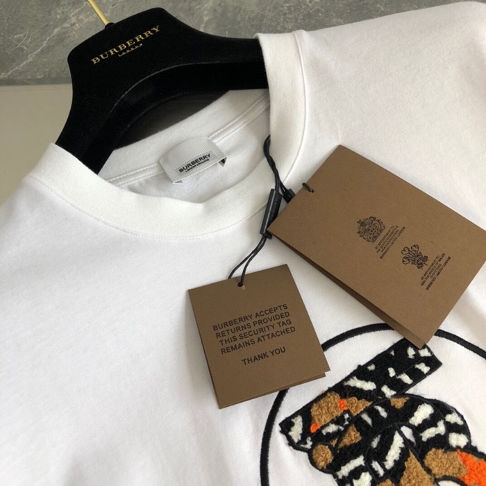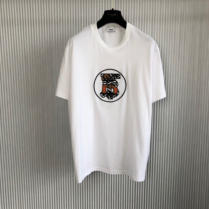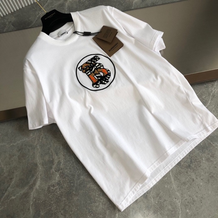 バーバリーユニセックスホワイトクルーネック半袖Tシャツr04353