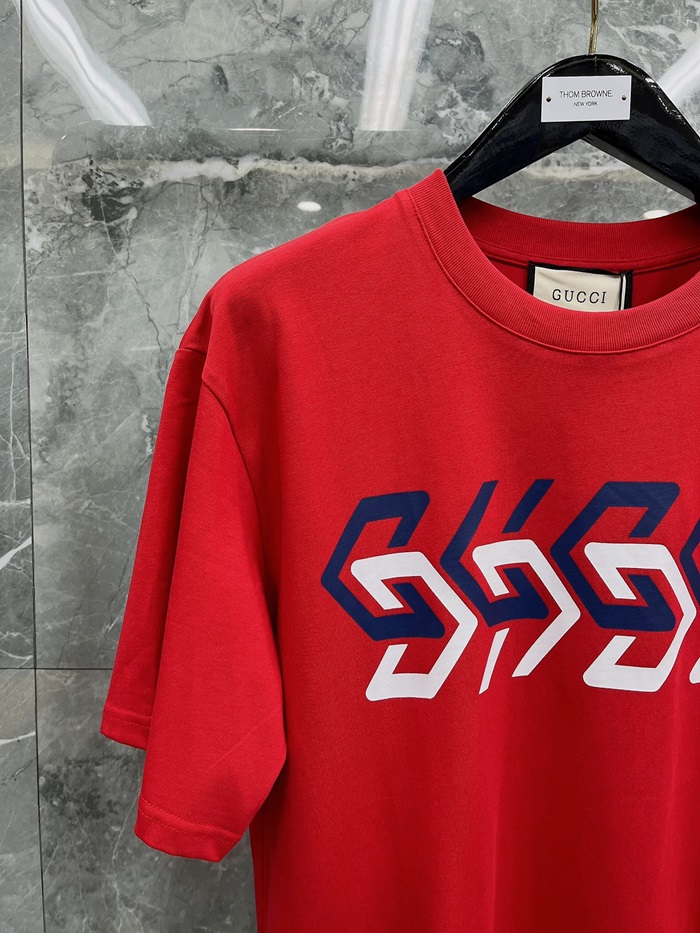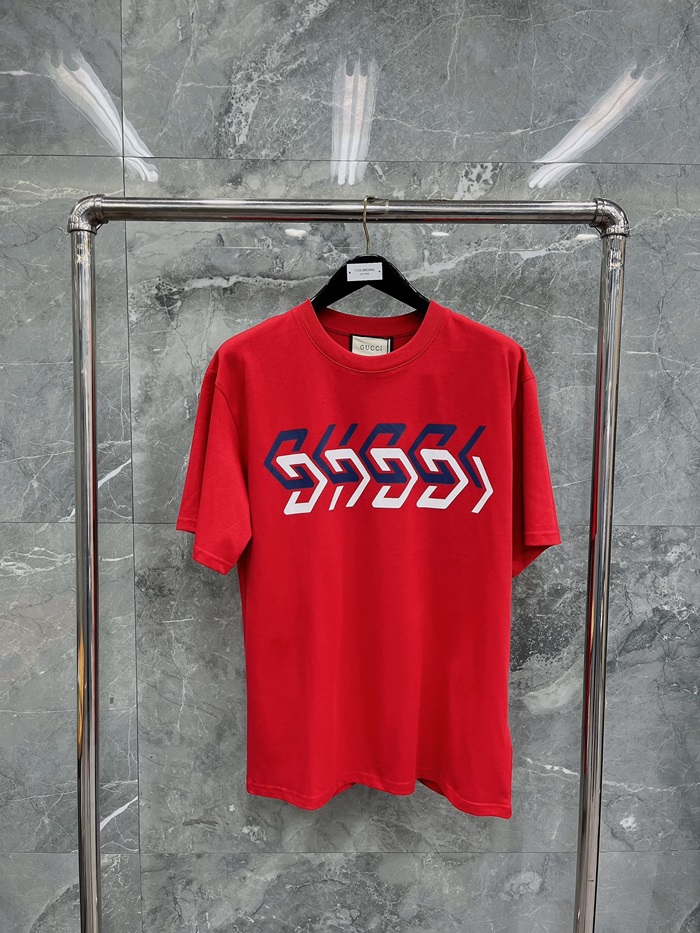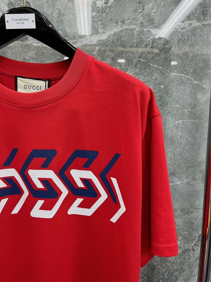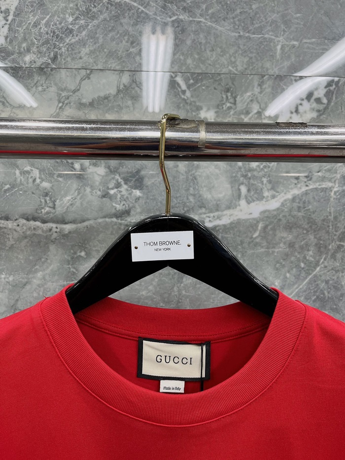 グッチメンズレッドクルーネック半袖Tシャツc04875