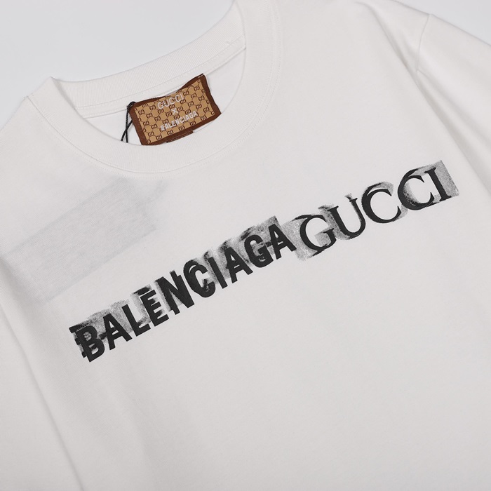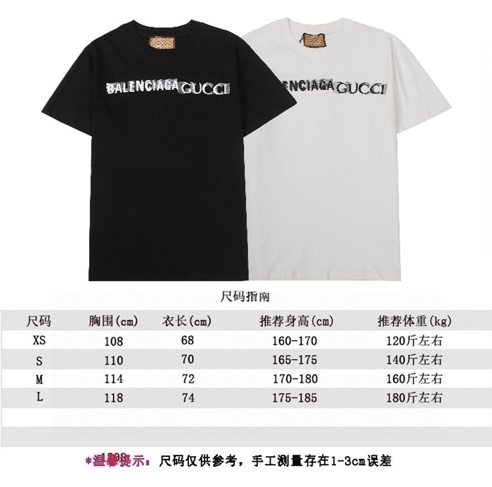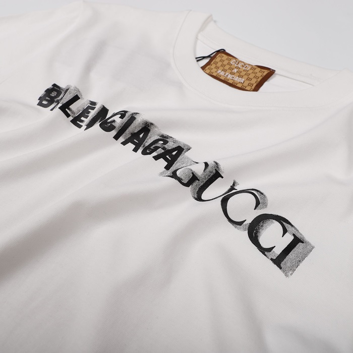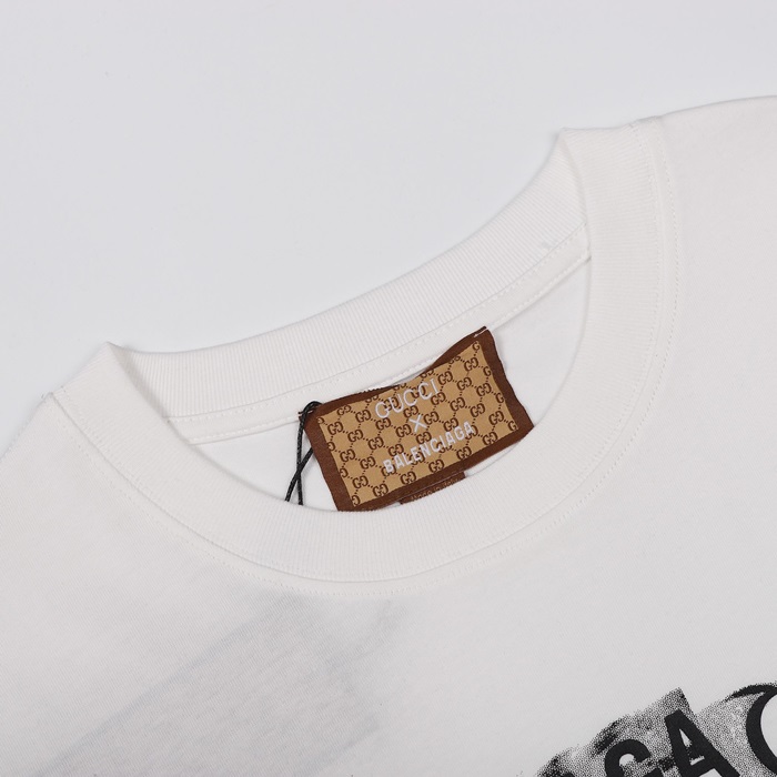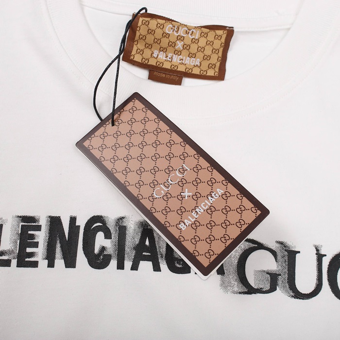 バレンシアガメンズクルーネックホワイト半袖Tシャツl01563