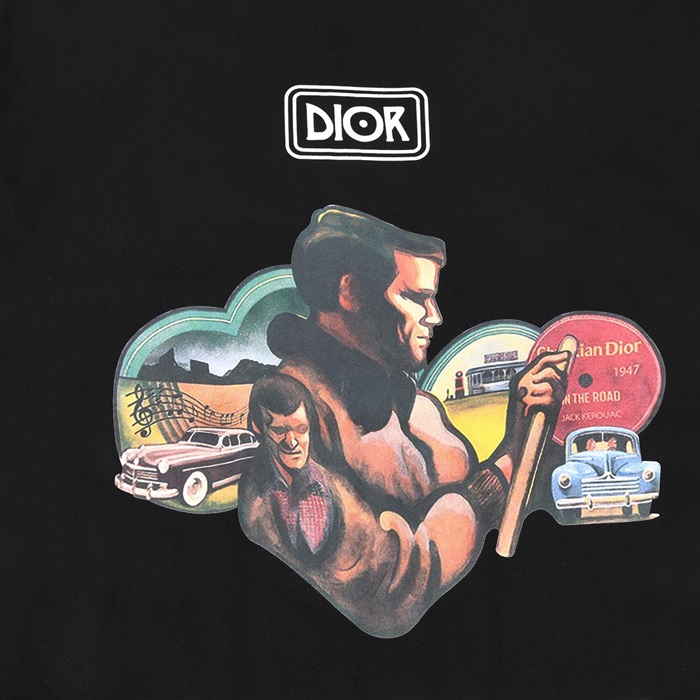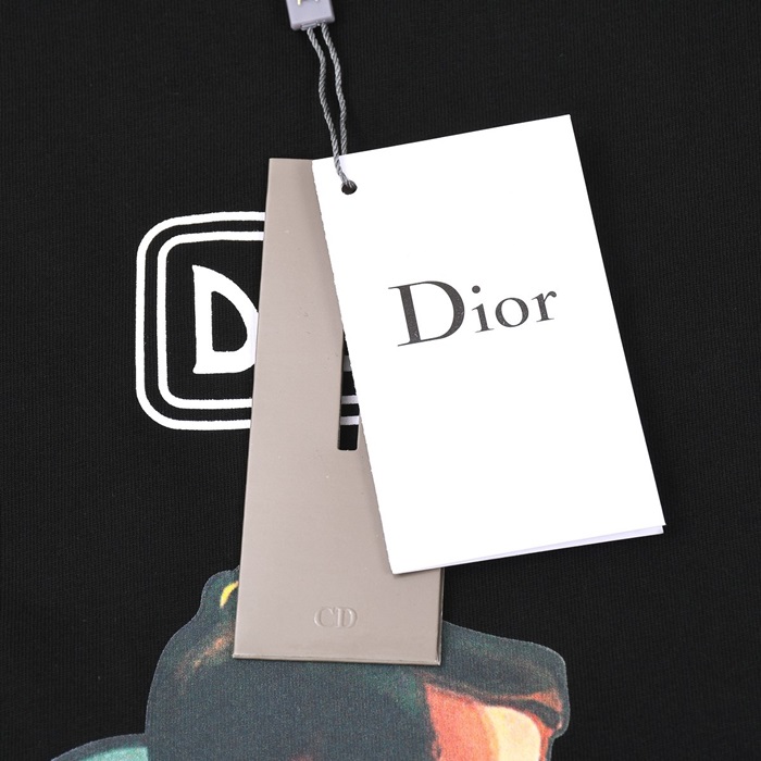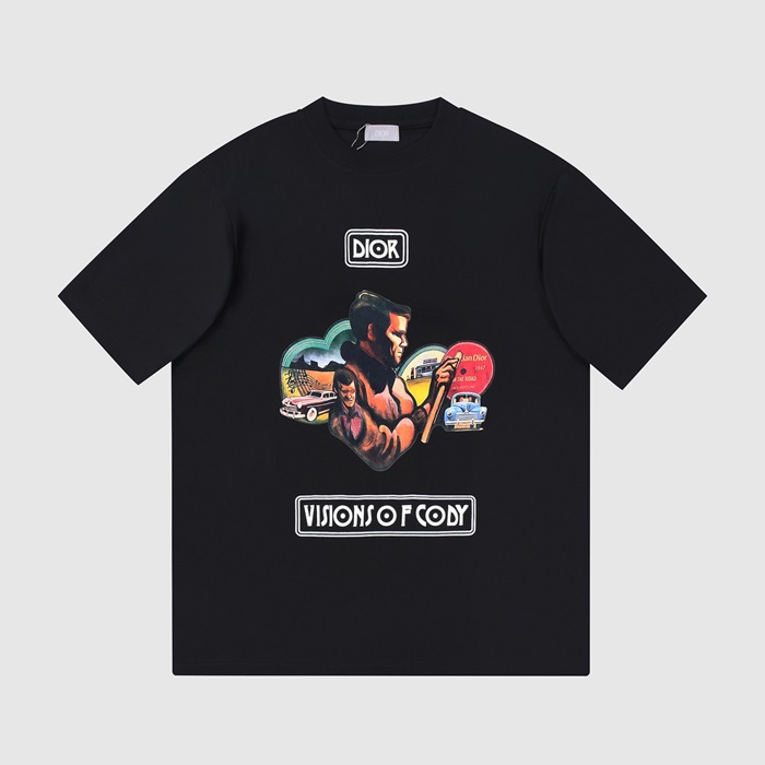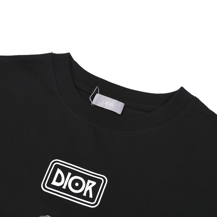 ディオールメンズブラッククルーネック半袖Tシャツo01876