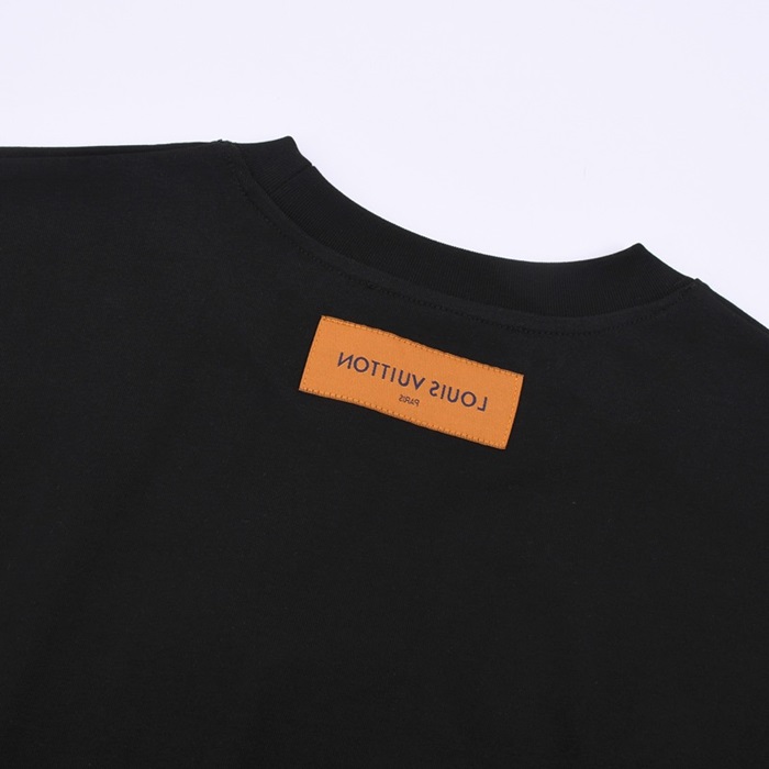 ルイヴィトンメンズブラッククルーネック半袖Tシャツu04922