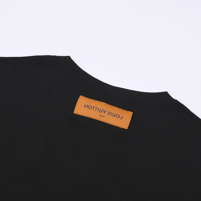 ルイヴィトンメンズブラッククルーネック半袖Tシャツu04923
