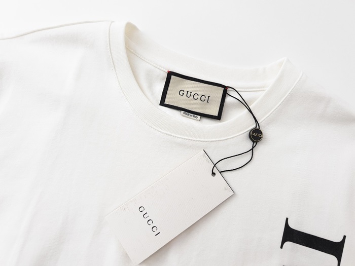 グッチユニセックスホワイトクルーネック半袖Tシャツc04906
