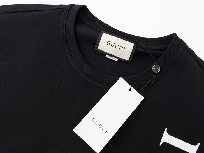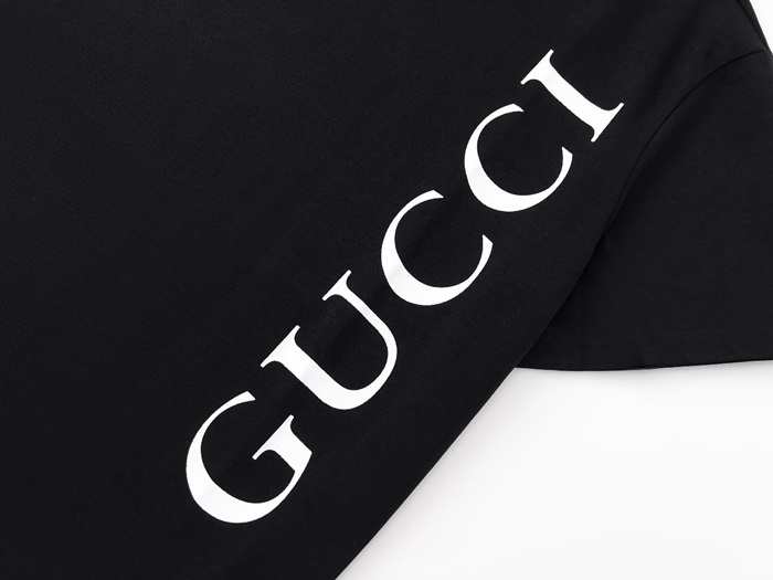 グッチユニセックスブラッククルーネック半袖Tシャツc04907