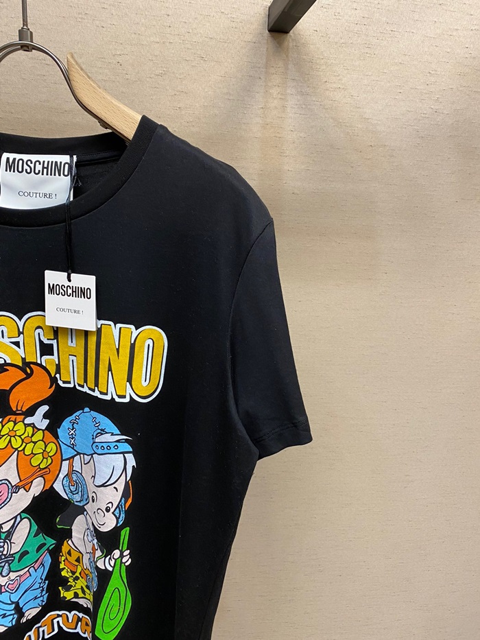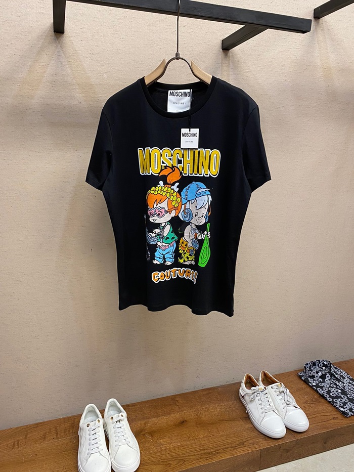 モスキーノメンズクルーネックブラック半袖Tシャツ-s0223