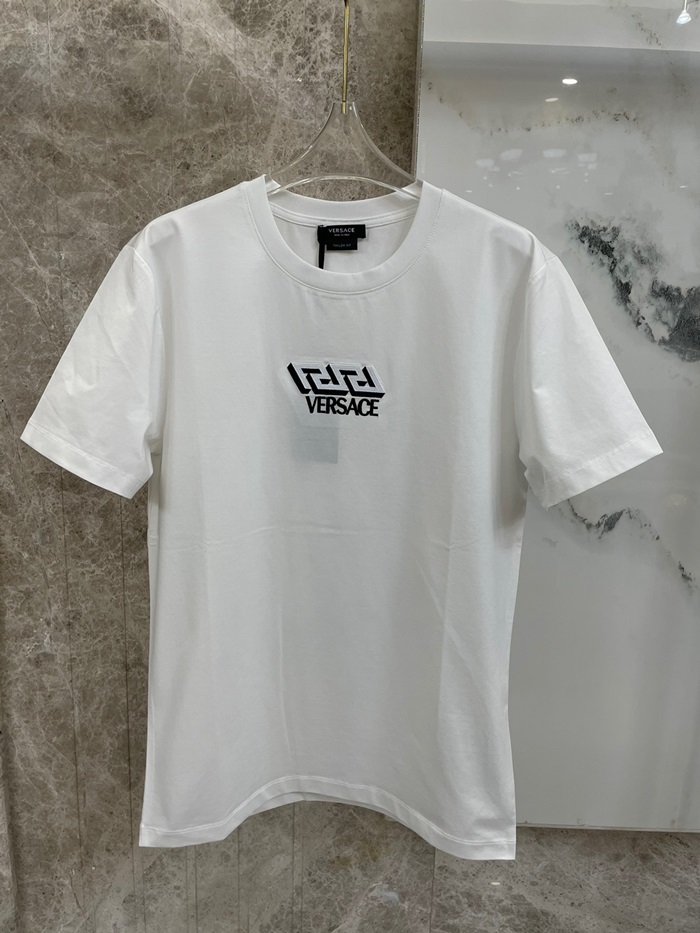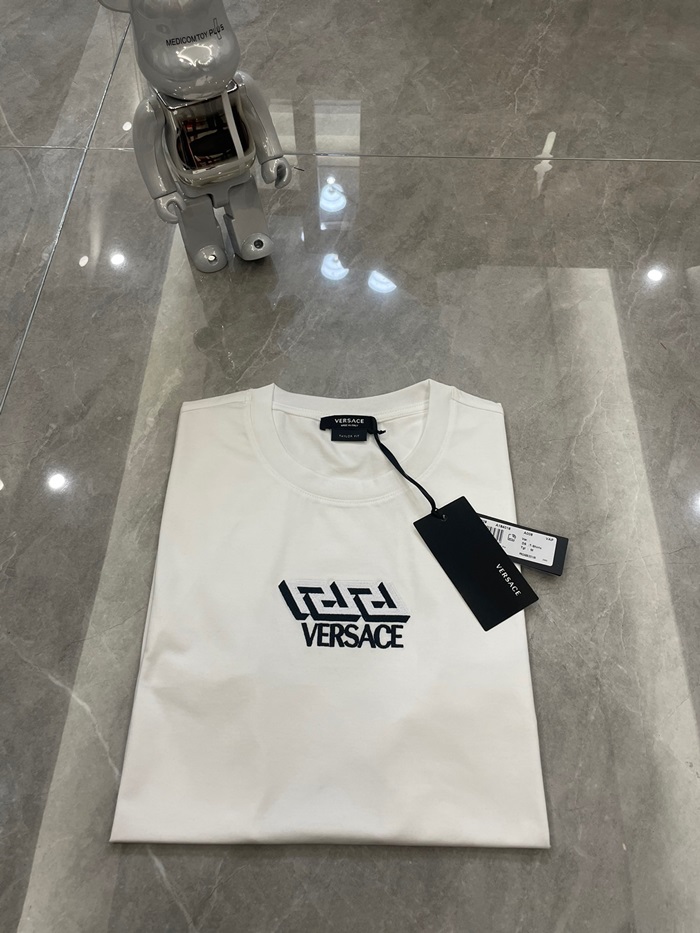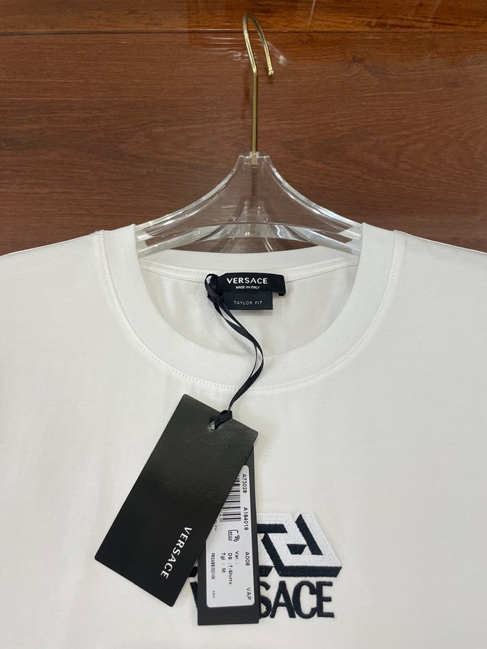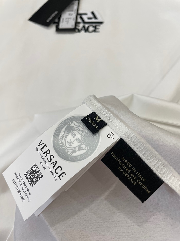 ヴェルサーチェメンズホワイトクルーネック半袖Tシャツr0906