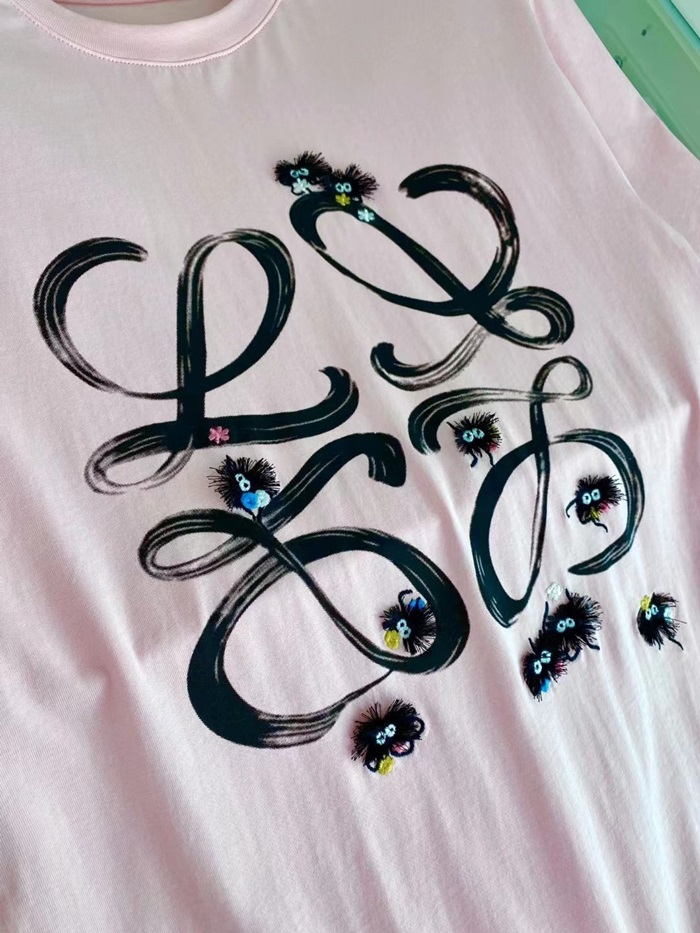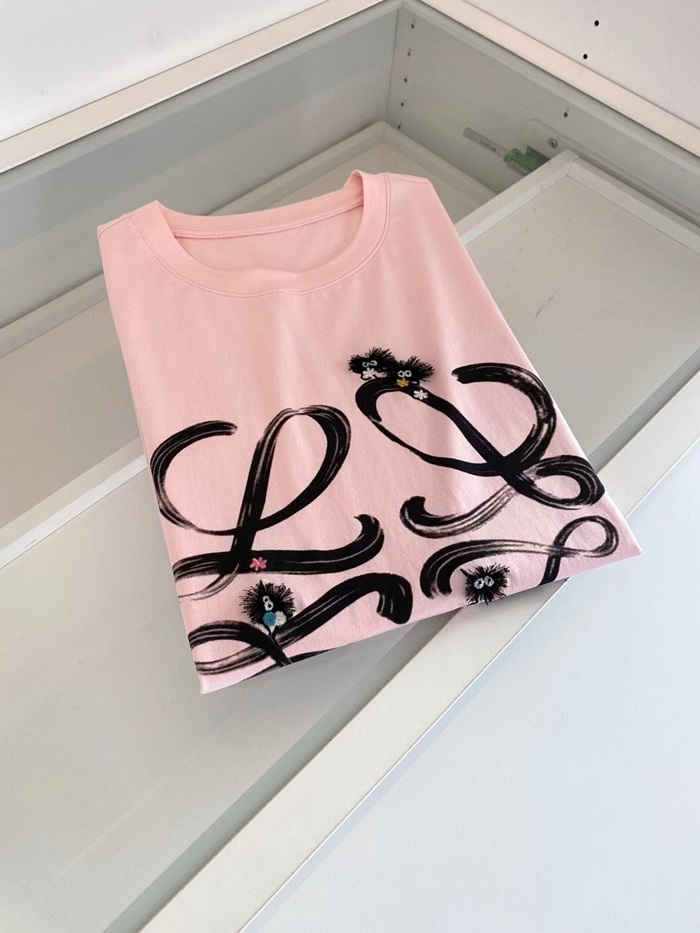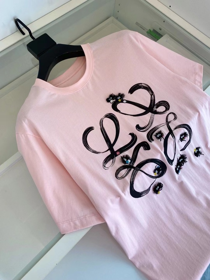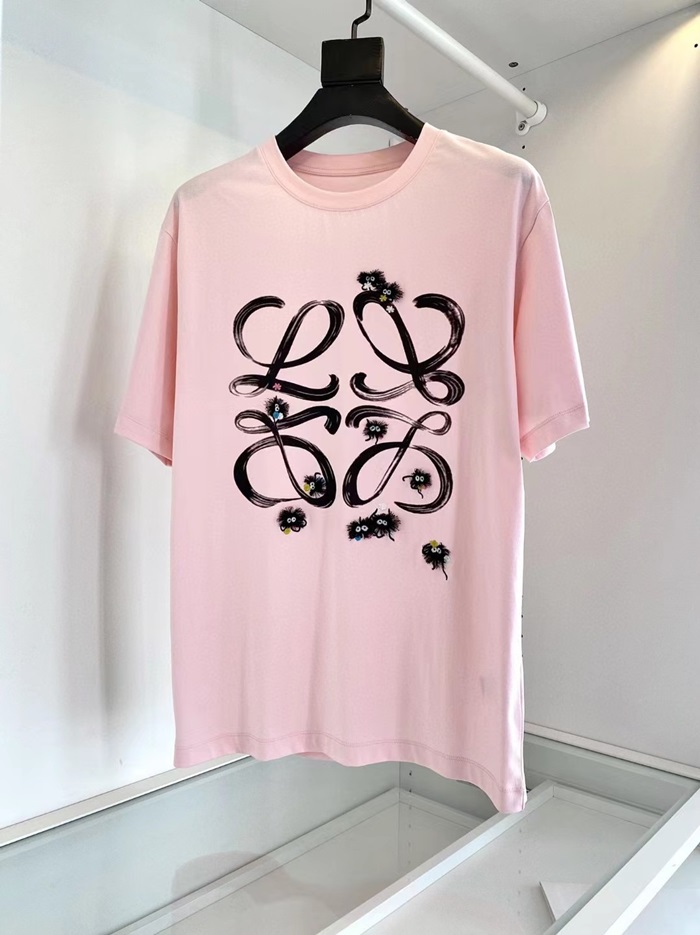 ロエベメンズイニシャルピンク半袖Tシャツe0617