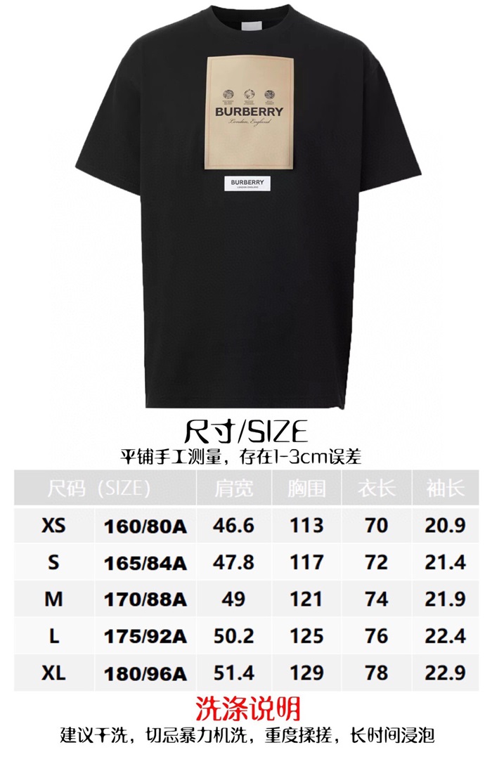 バーバリーメンズブラッククルーネック半袖Tシャツr04383