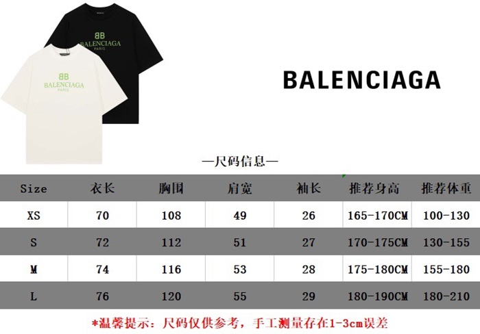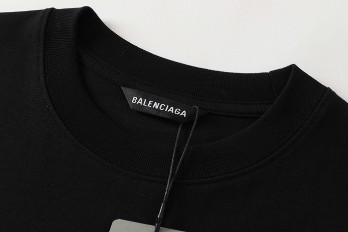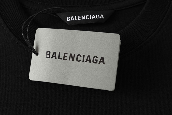 バレンシアガメンズクルーネックブラック半袖Tシャツl01582