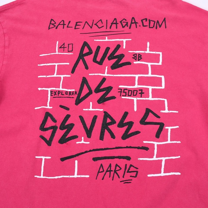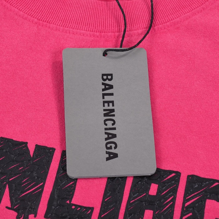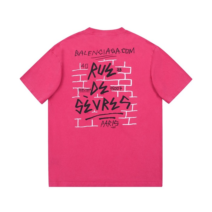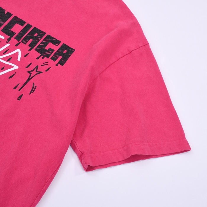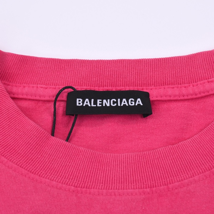 バレンシアガメンズクルーネックピンク半袖Tシャツl01584