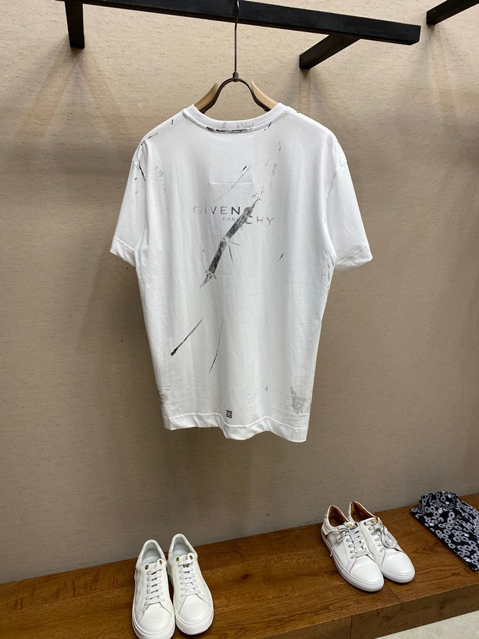 ジバンシィメンズクルーネックホワイト半袖Tシャツv0747