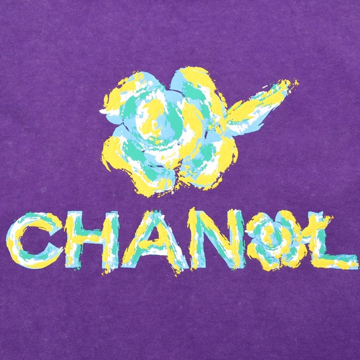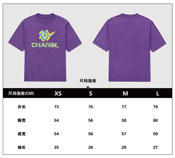 シャネルユニセックスクルーネックパープル半袖Tシャツl0903