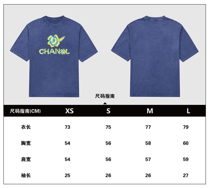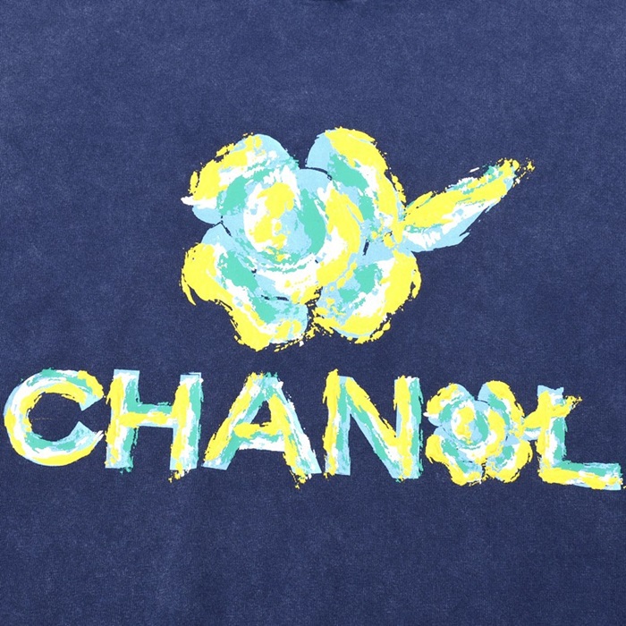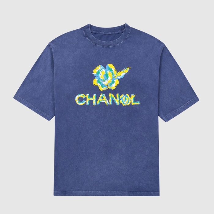 シャネルユニセックスクルーネックブルー半袖Tシャツl0904
