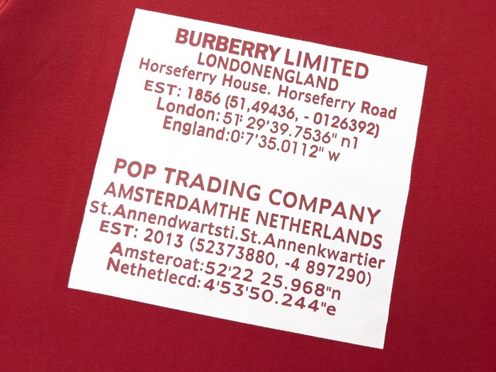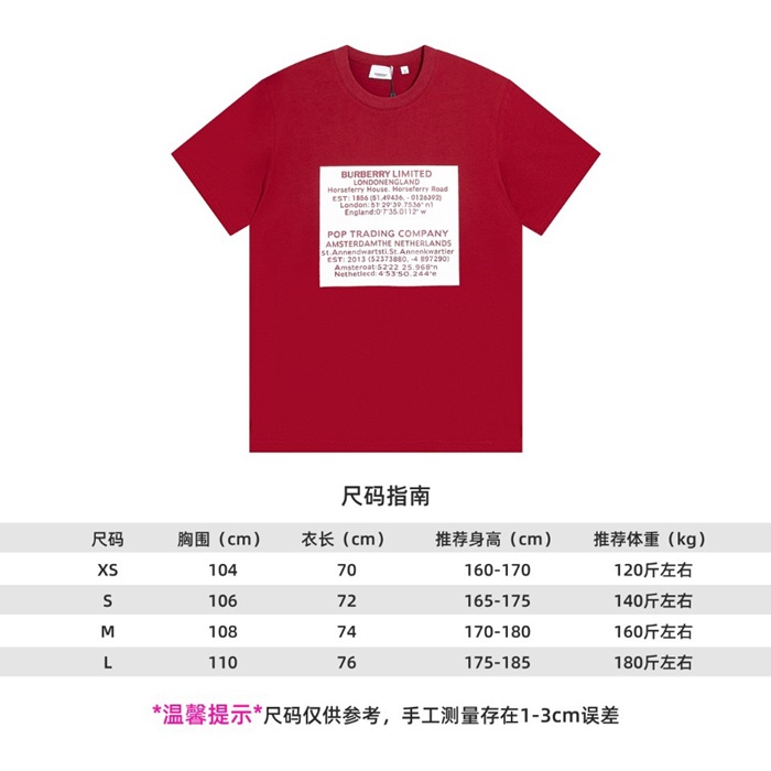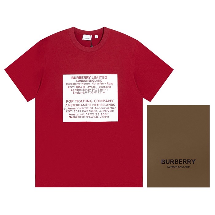 バーバリーメンズレッドクルーネック半袖Tシャツr04426