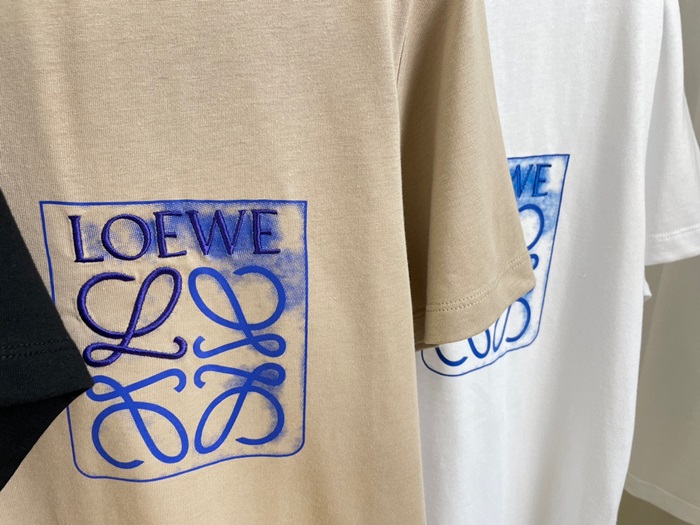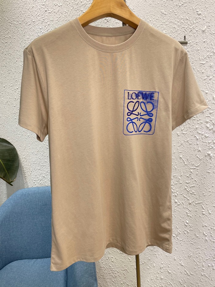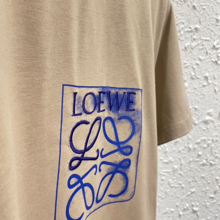 ロエベユニセックスイニシャルキャメル半袖Tシャツe0627
