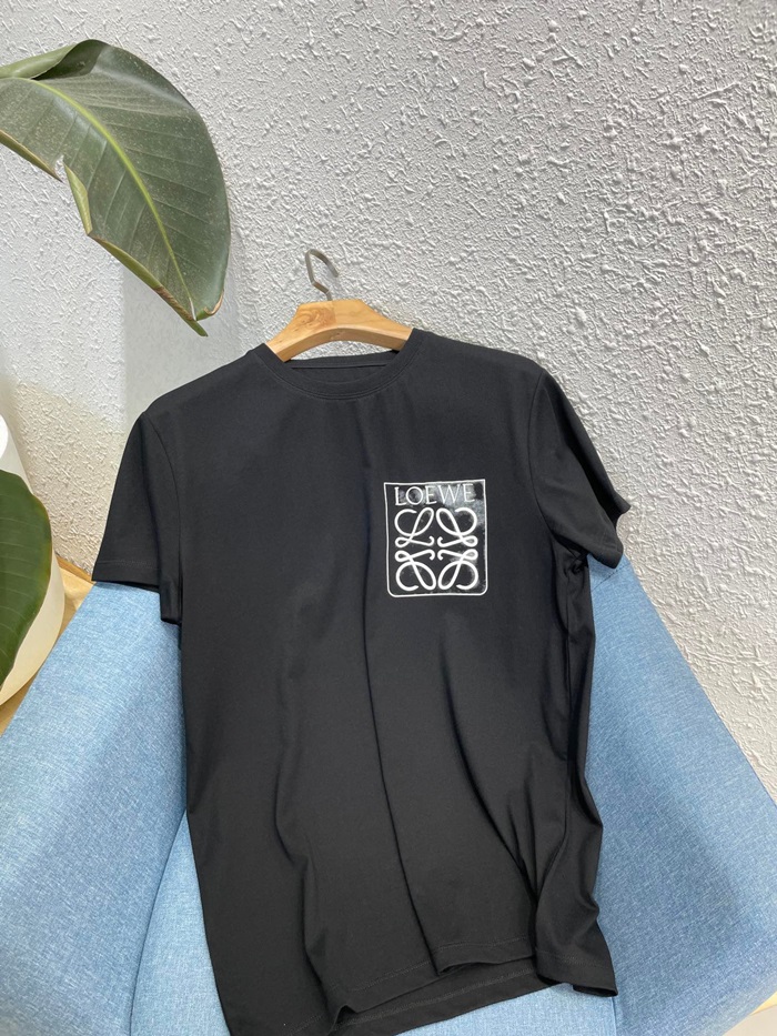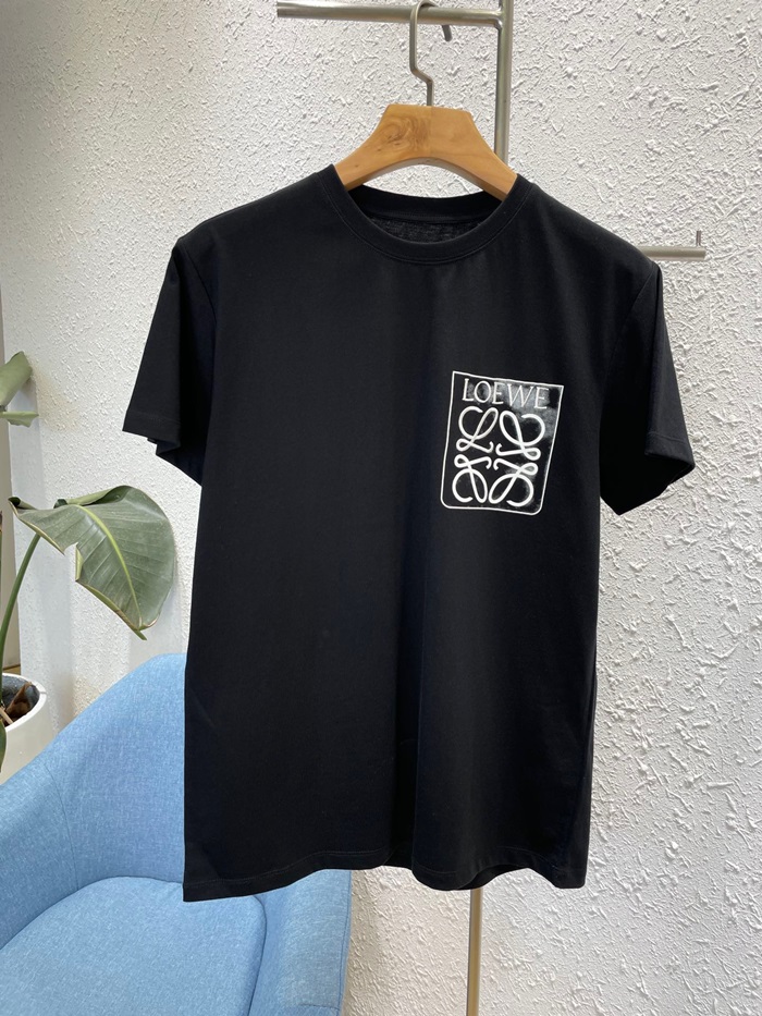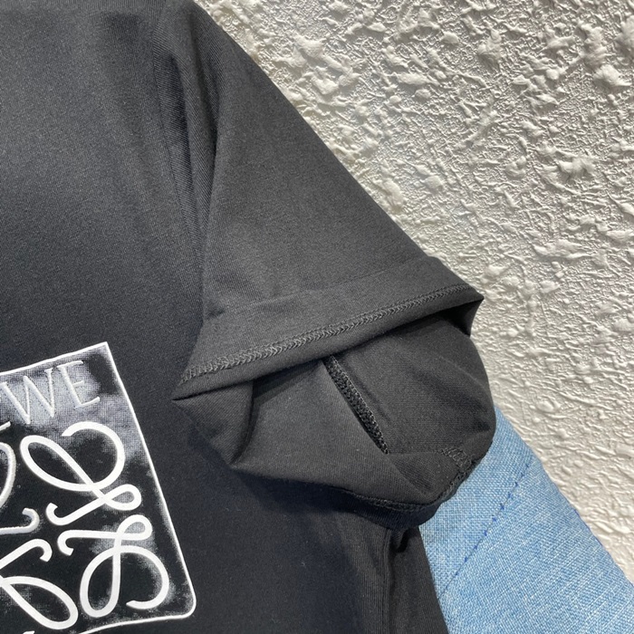 ロエベユニセックスイニシャルブラック半袖Tシャツe0628
