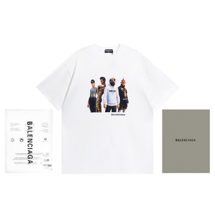 バレンシアガメンズクルーネックホワイト半袖Tシャツl01595