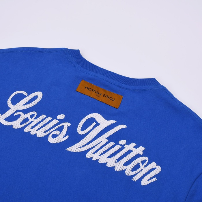 ルイヴィトンメンズブルークルーネック半袖Tシャツu04995