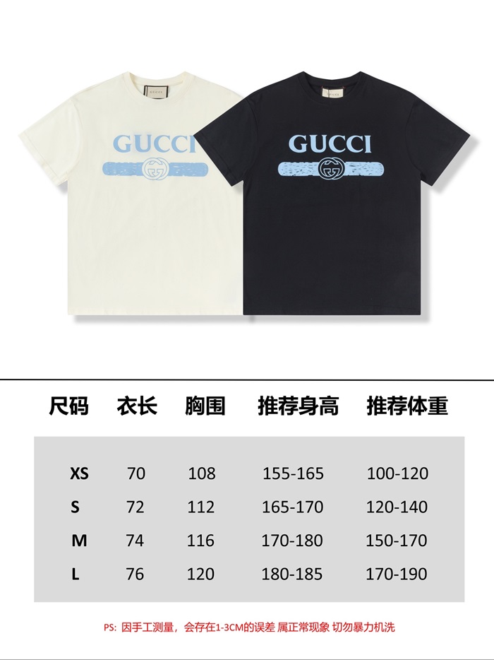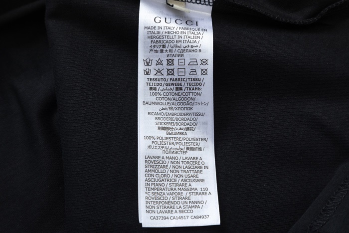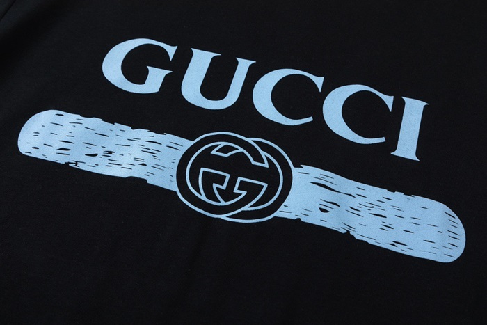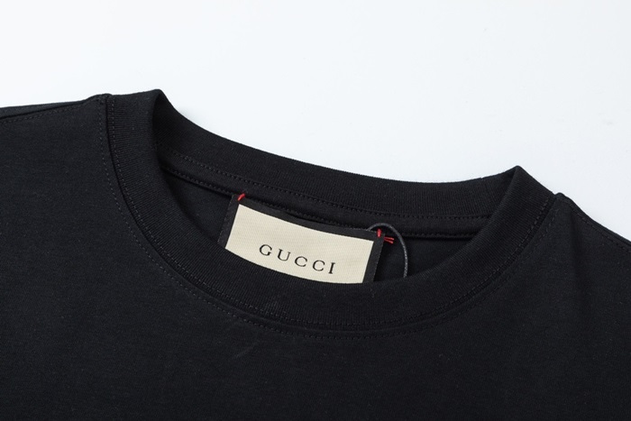 グッチユニセックスブラッククルーネック半袖Tシャツc04934