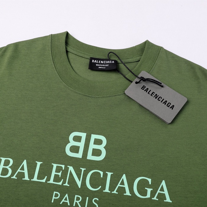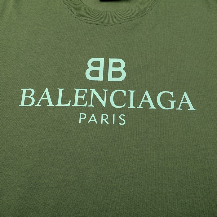バレンシアガメンズクルーネックグリーン半袖Tシャツl01602