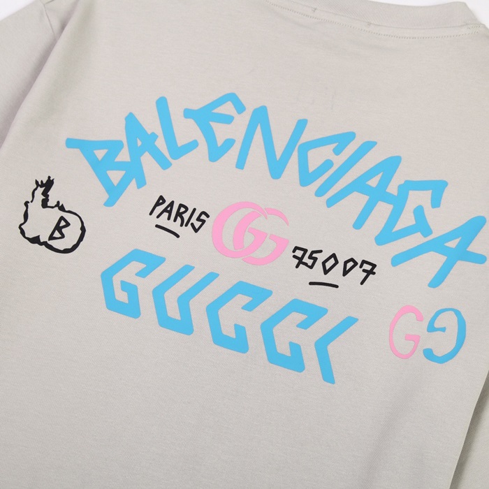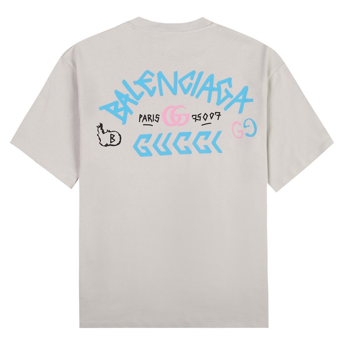 グッチユニセックスグレークルーネック半袖Tシャツc04949