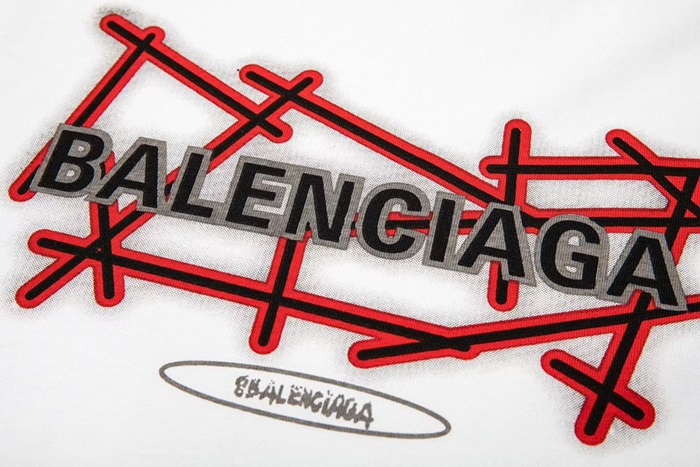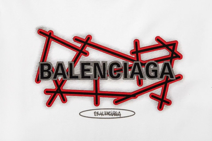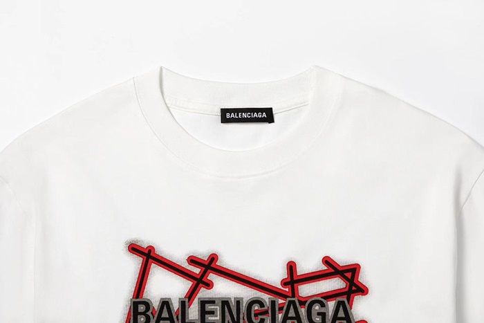 バレンシアガメンズクルーネックホワイト半袖Tシャツl01603