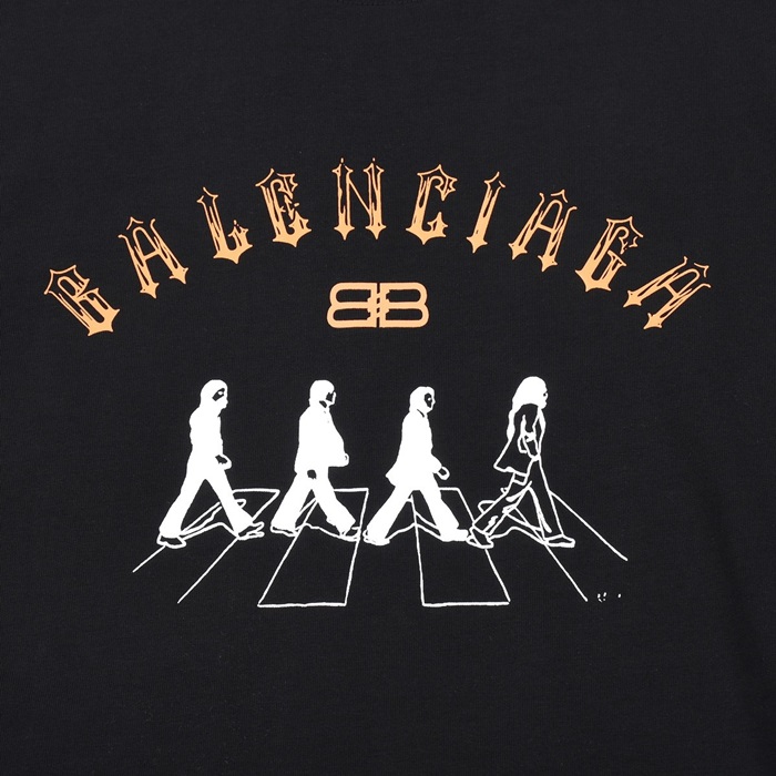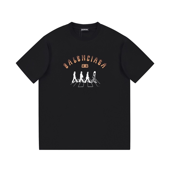 バレンシアガメンズクルーネックブラック半袖Tシャツl01606