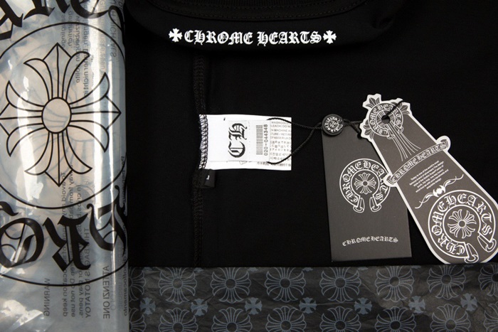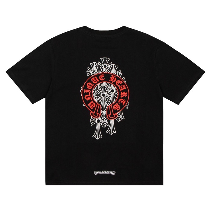 クロムハーツメンズブラッククルーネック半袖Tシャツr0453