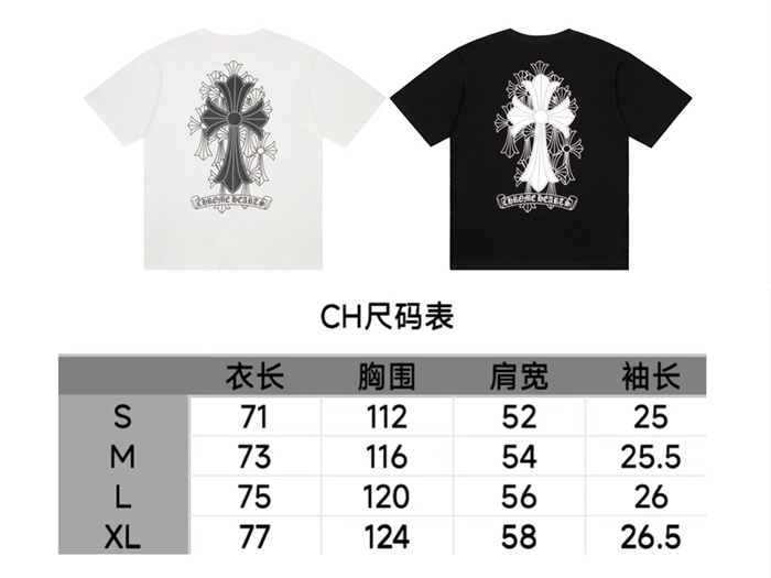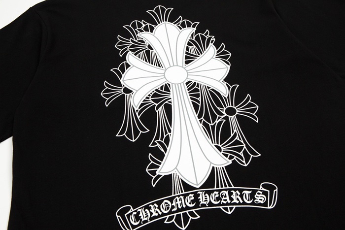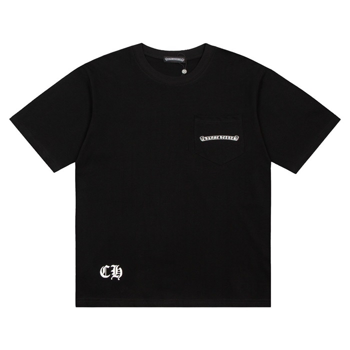 クロムハーツメンズブラッククルーネック半袖Tシャツr0454