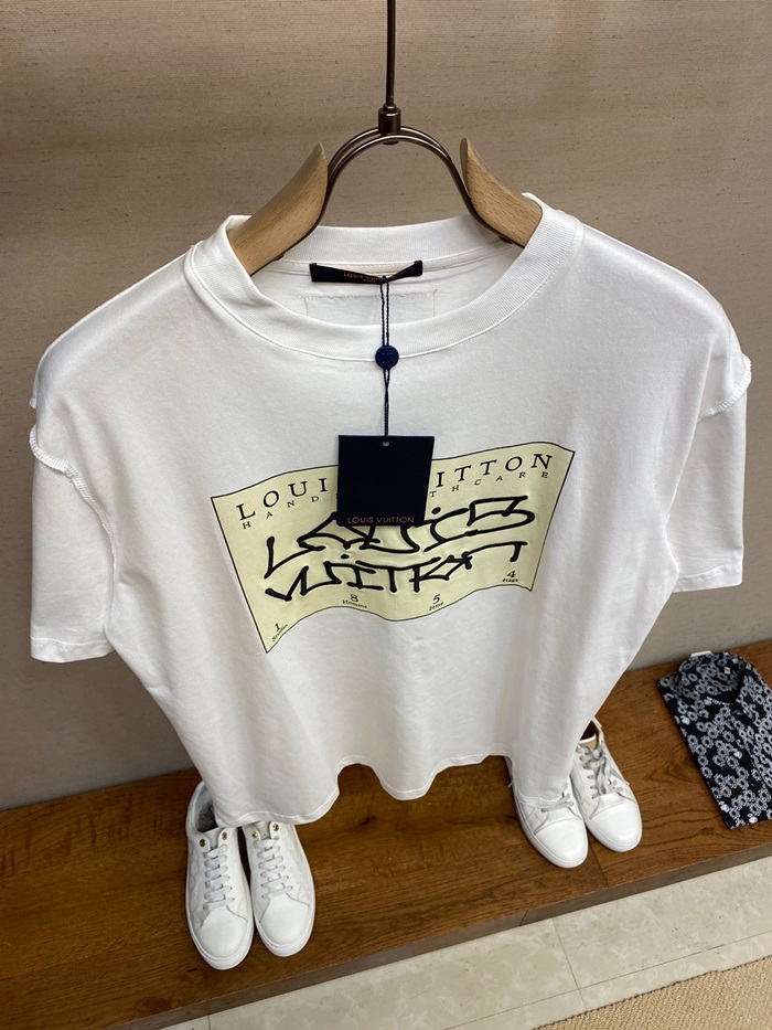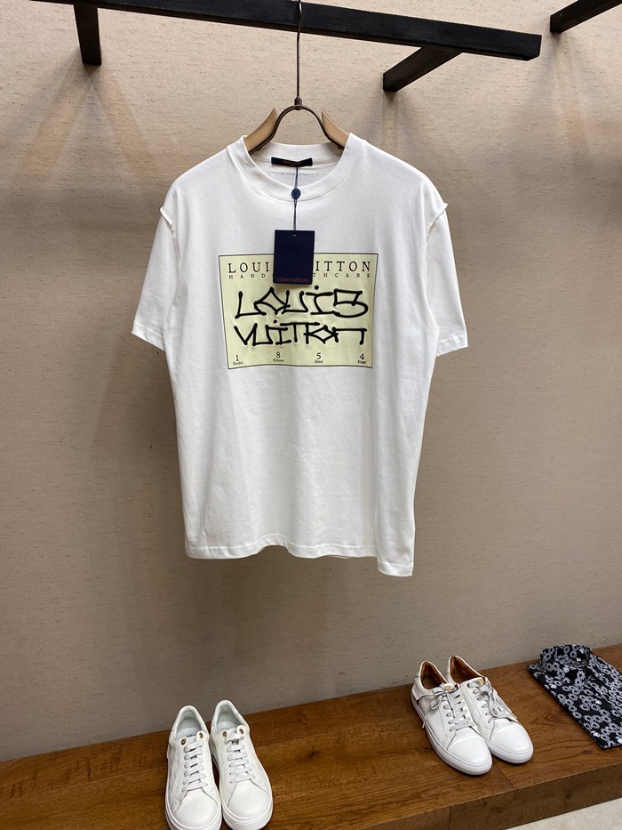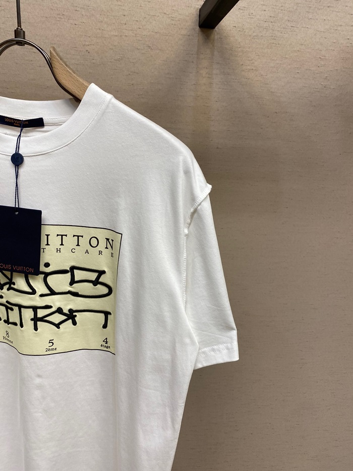 ルイヴィトンメンズホワイトクルーネック半袖Tシャツu05021