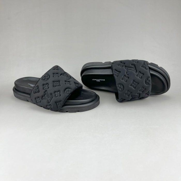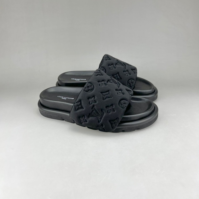 ルイヴィトンユニセックスイニシャルブラックスリッパu05030