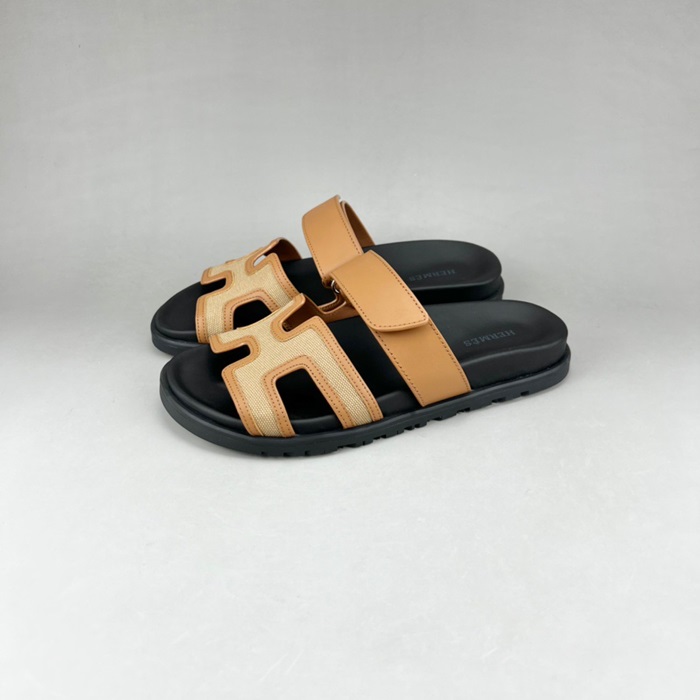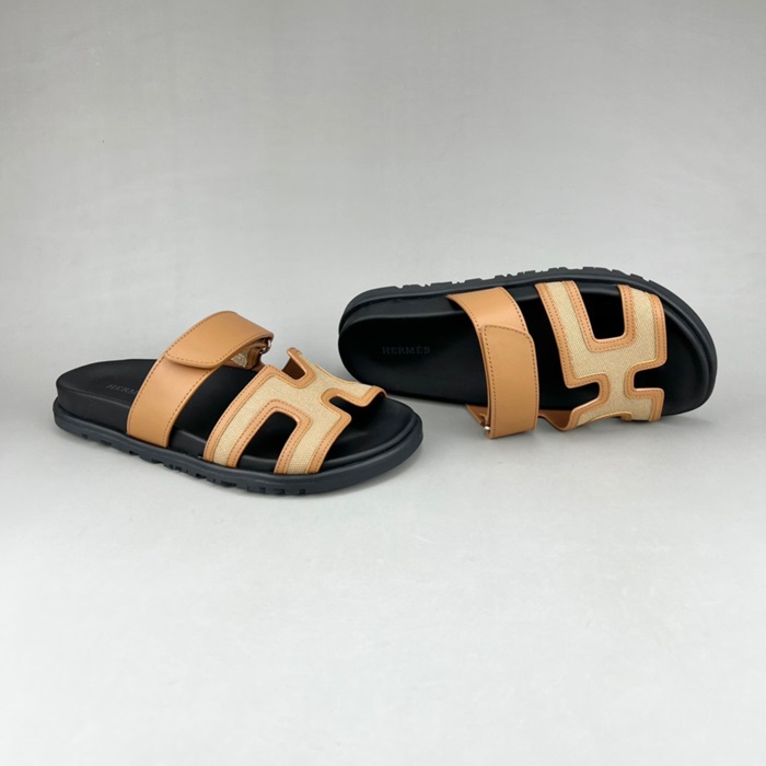 エルメスユニセックスキャメルスリッパr0804