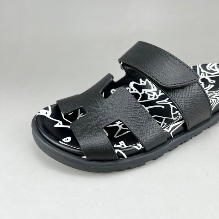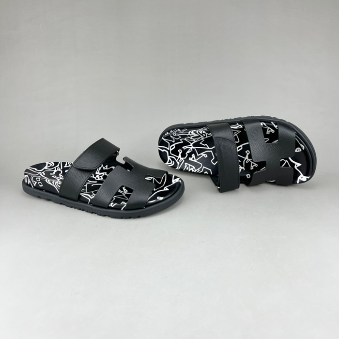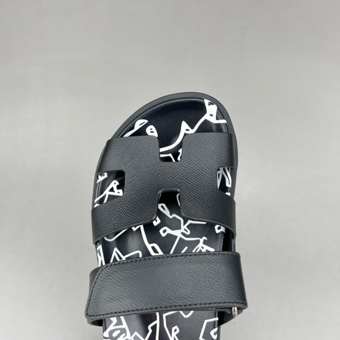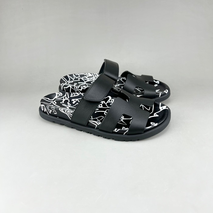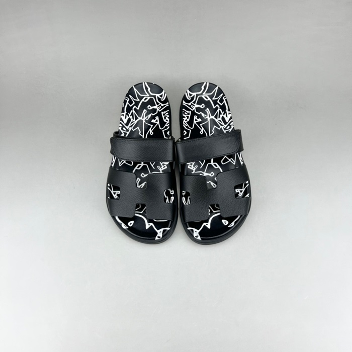 エルメスユニセックスブラックスリッパr0805