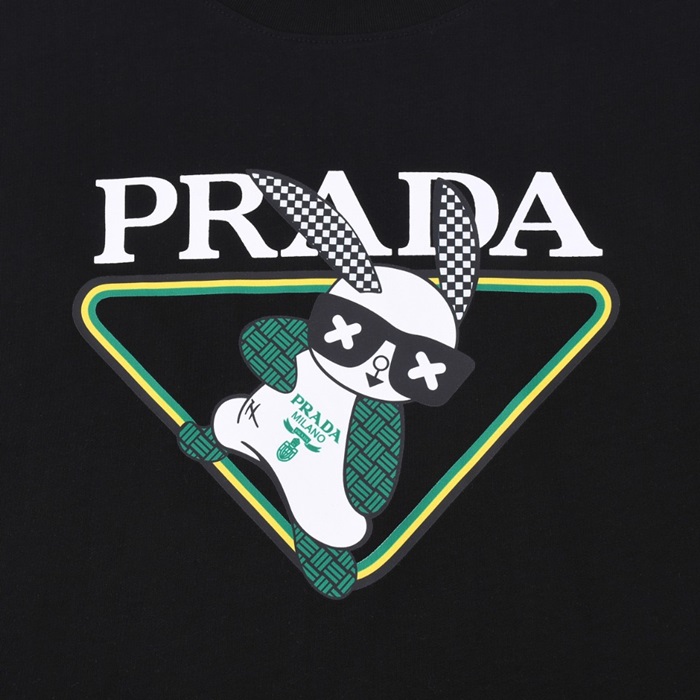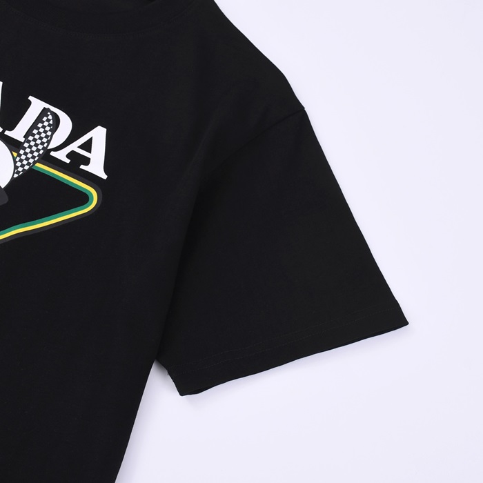 プラダメンズクルーネックブラック半袖Tシャツa02735