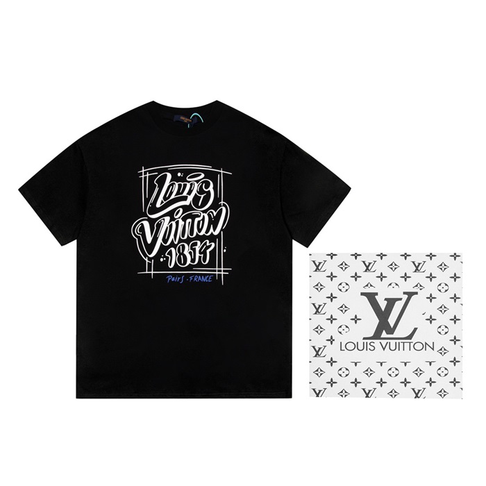 ルイヴィトンメンズブラッククルーネック半袖Tシャツu05065