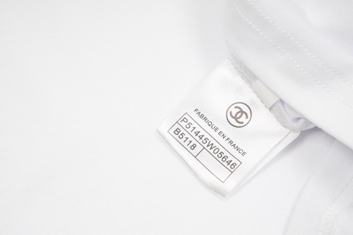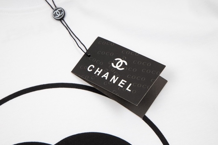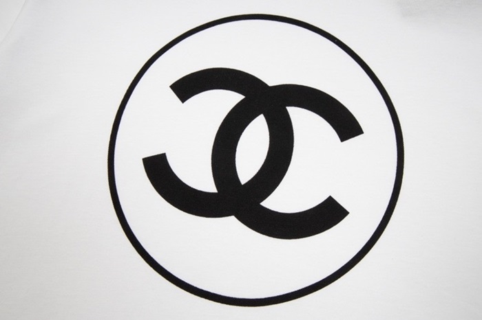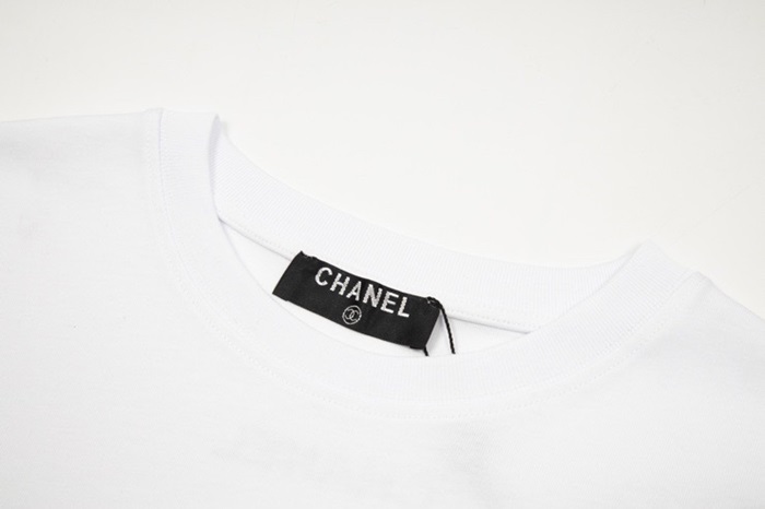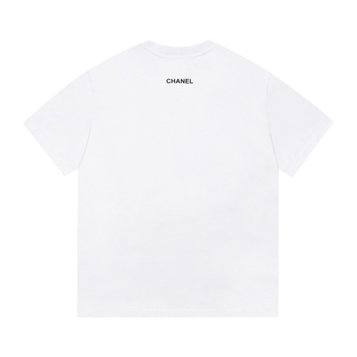 シャネルユニセックスクルーネックホワイト半袖Tシャツl0908