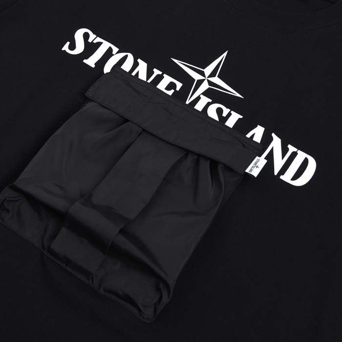 ストーンアイランドメンズブラッククルーネック半袖Tシャツo0486