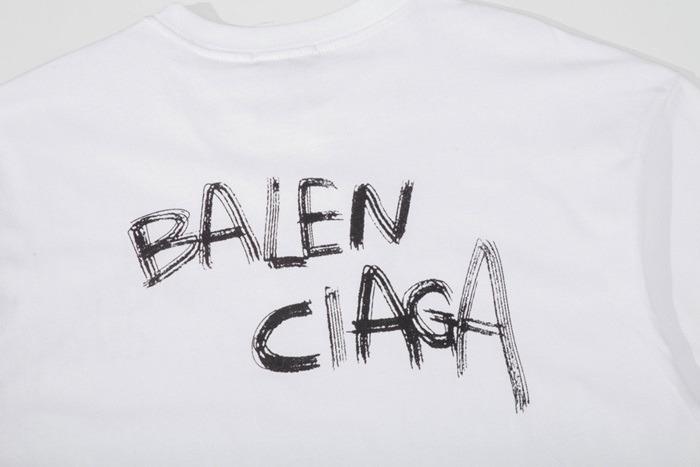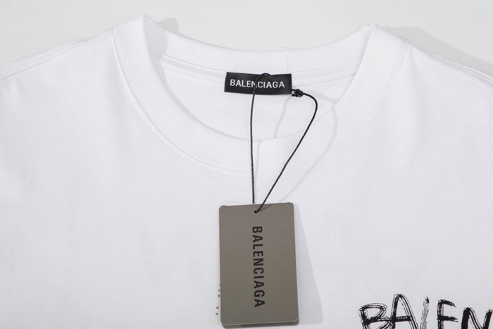 バレンシアガメンズクルーネックホワイト半袖Tシャツl01622