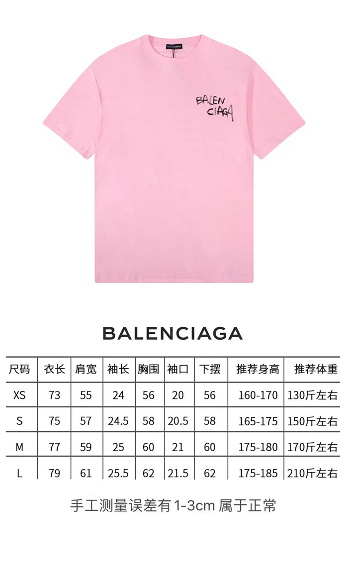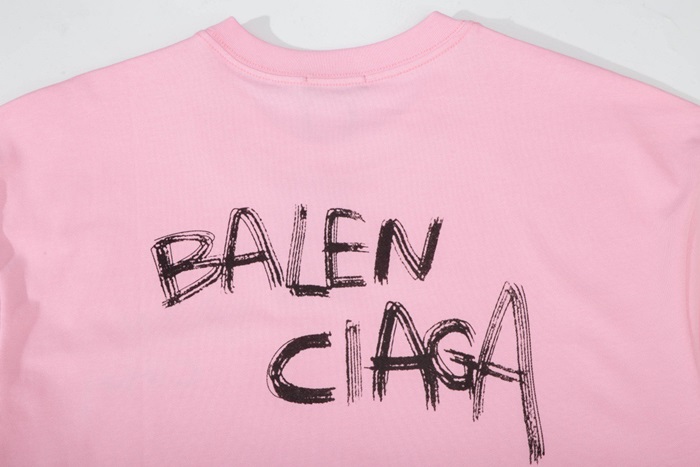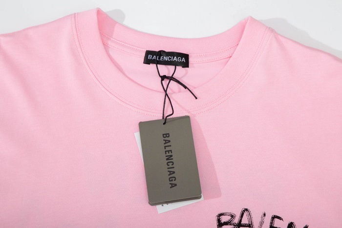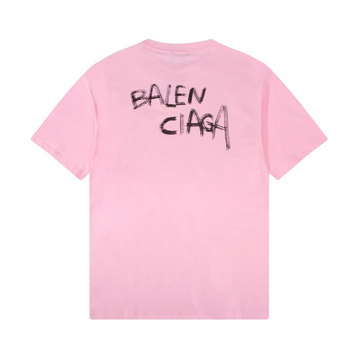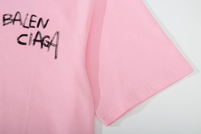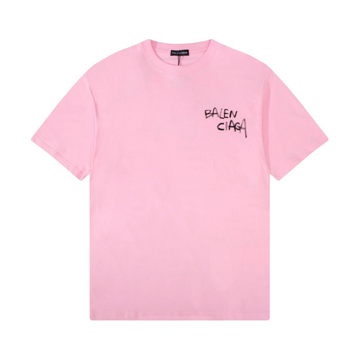 バレンシアガメンズクルーネックピンク半袖Tシャツl01624