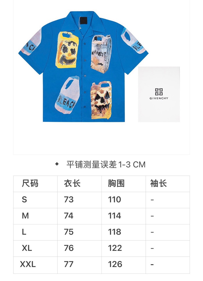ジバンシィメンズブルー半袖シャツv0785
