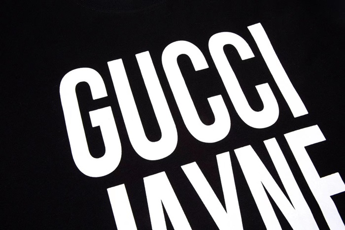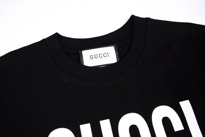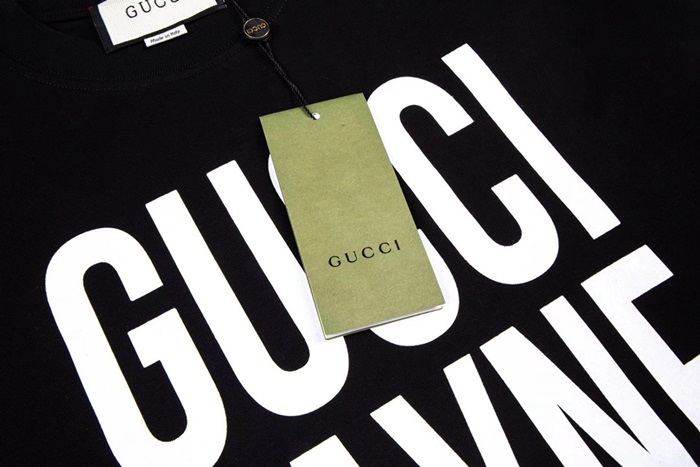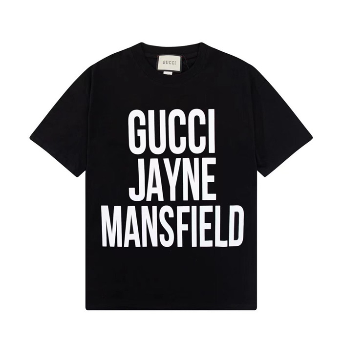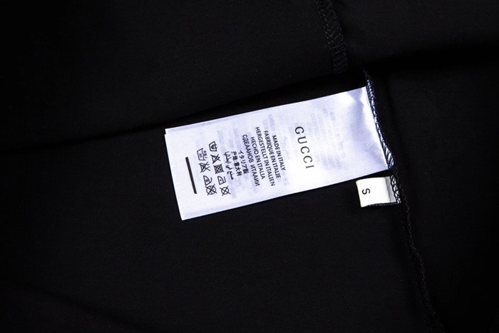 グッチユニセックスブラッククルーネック半袖Tシャツc04985