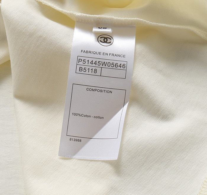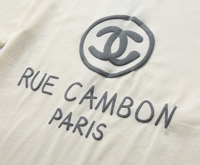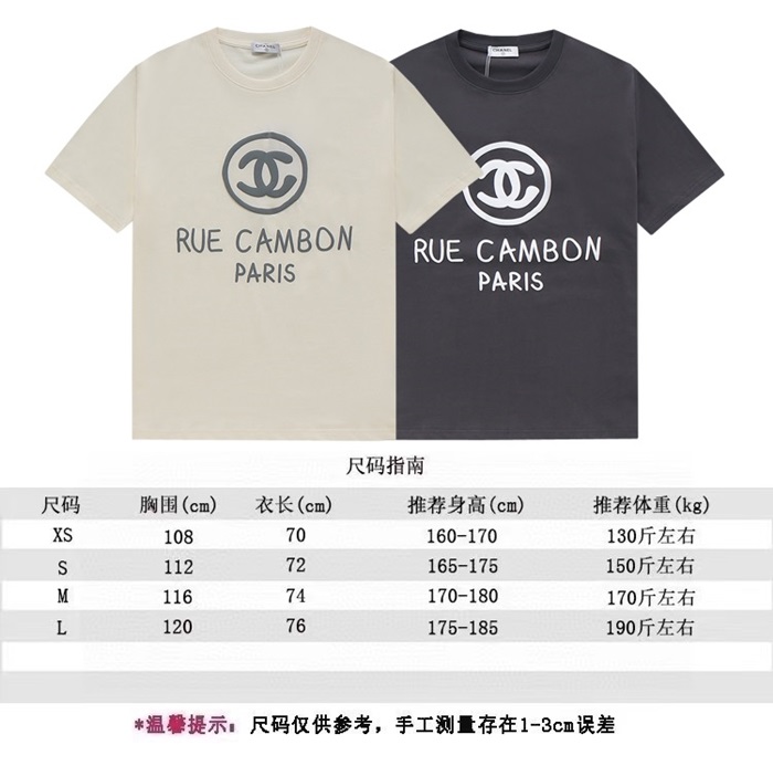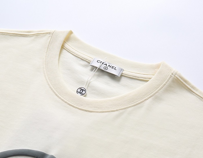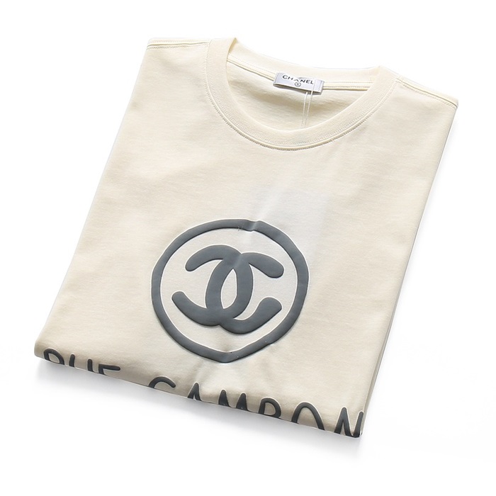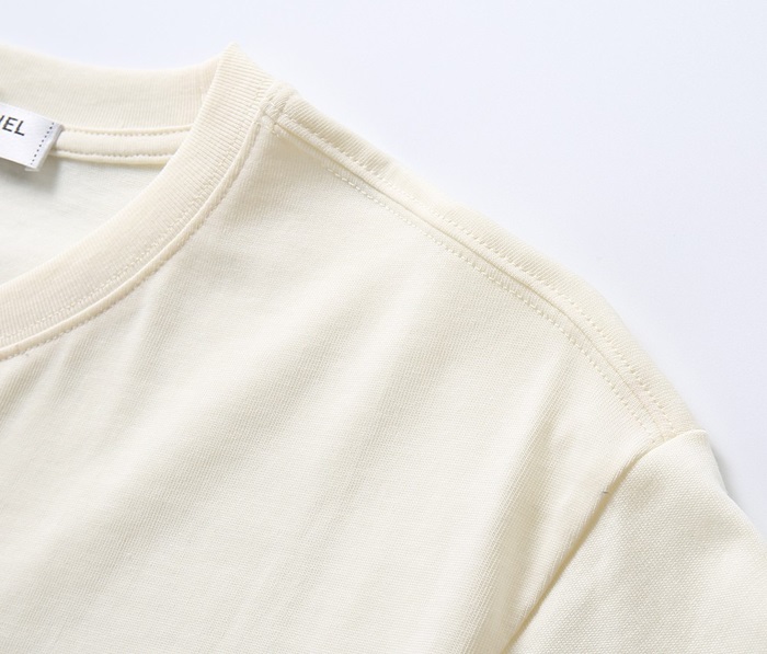 シャネルユニセックスクルーネックアイボリー半袖Tシャツl0911