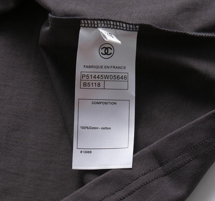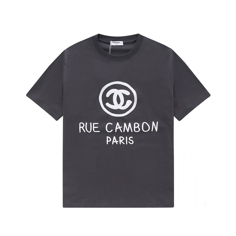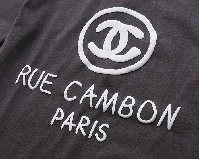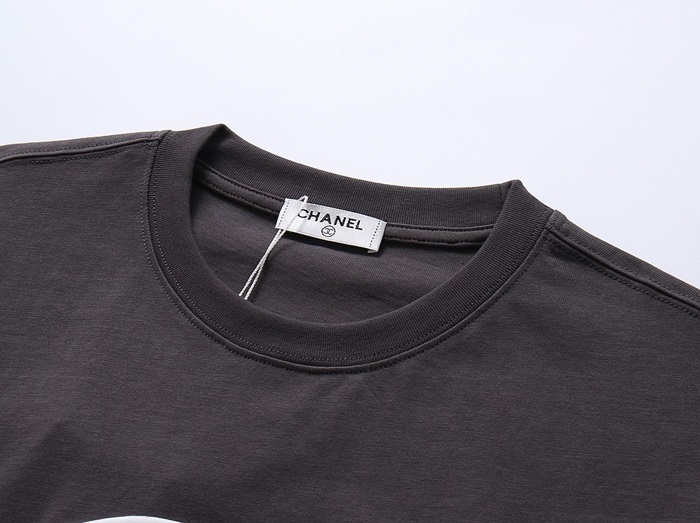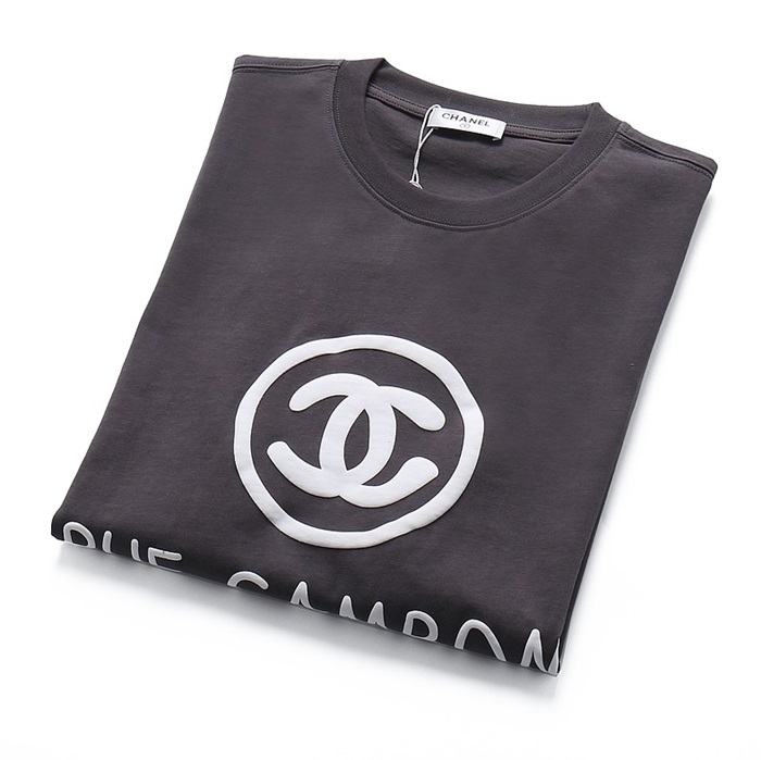 シャネルユニセックスクルーネックグレー半袖Tシャツl0912