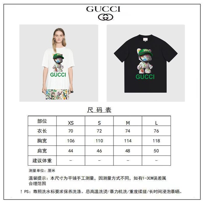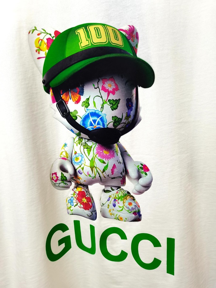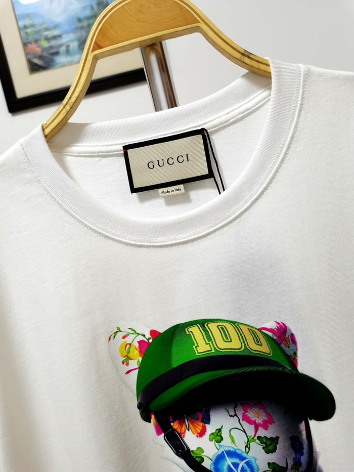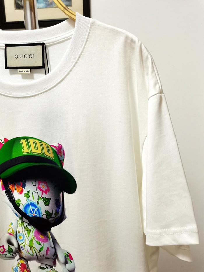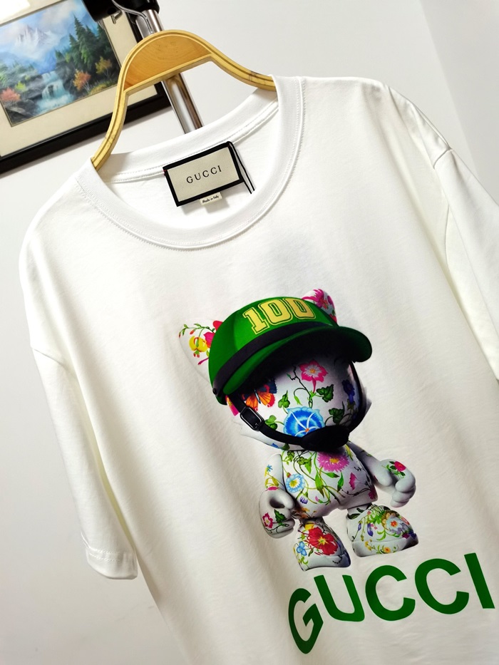 グッチユニセックスホワイトクルーネック半袖Tシャツc04989
