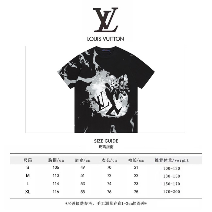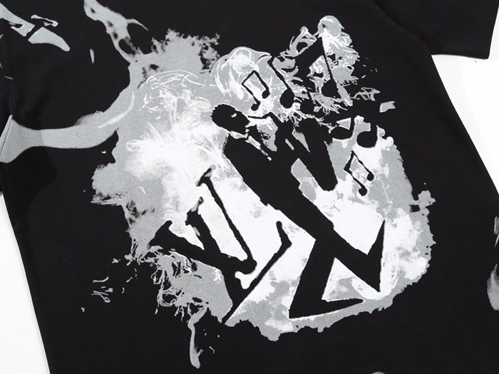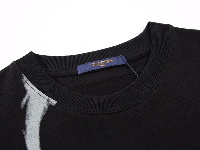 ルイヴィトンメンズブラッククルーネック半袖Tシャツu05108